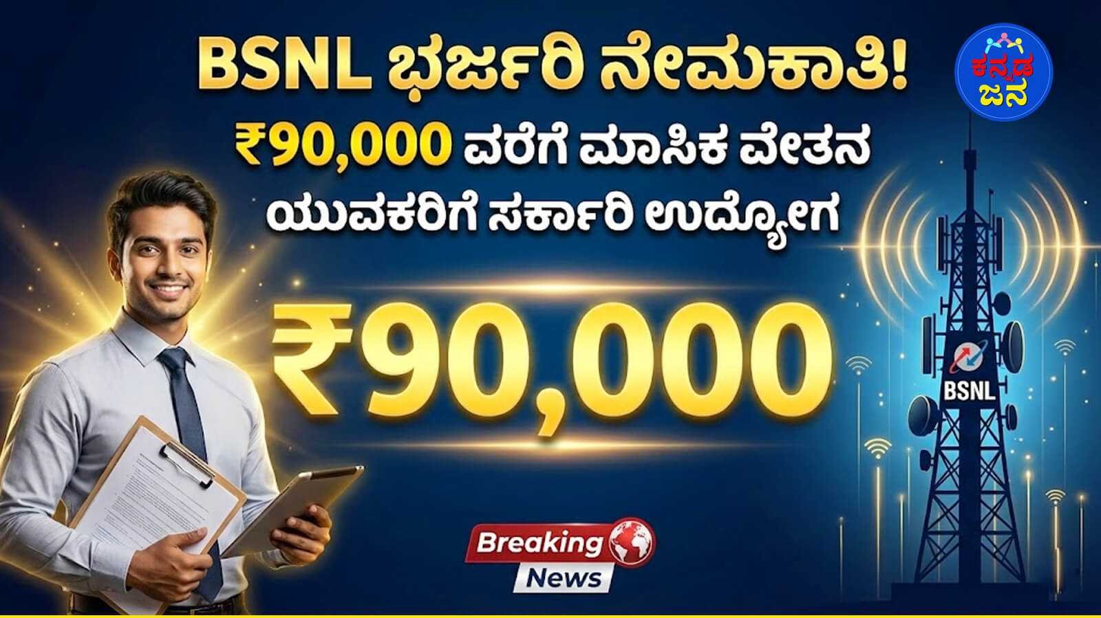 BSNL Recruitment 2026: ಬಿಎಸ್ಎನ್ಎಲ್ನಲ್ಲಿ ಭರ್ಜರಿ ನೇಮಕಾತಿ | ತಿಂಗಳಿಗೆ 90,000 ರೂ.ವರೆಗೆ ವೇತನ – ಸಂಪೂರ್ಣ ಮಾಹಿತಿ